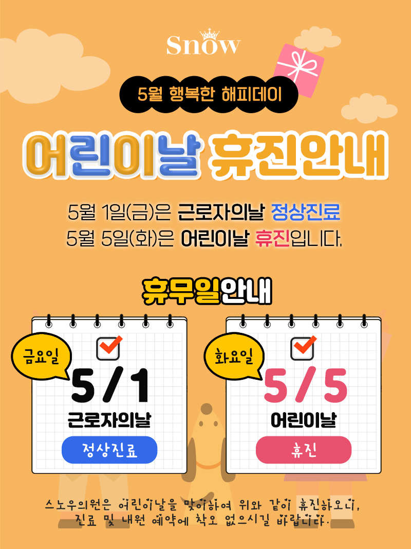 2026년 어린이날 휴진 안내입니다.